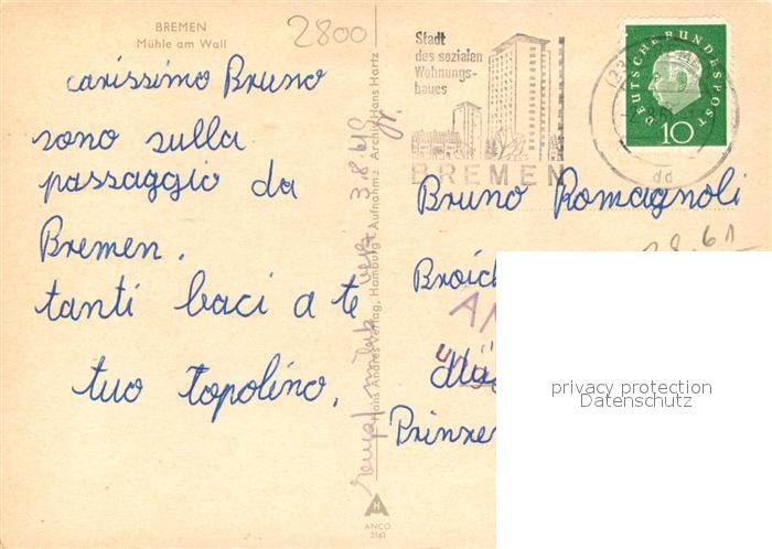 73151506 alte Postkarte BREMEN DE Muehle am Wall postalisch gelaufen Erhaltung siehe scans [FriedD77] KatCode: 11110004011000
