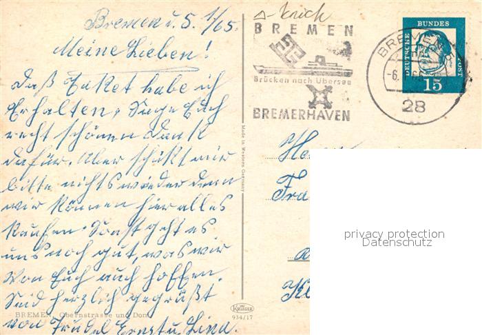 73205762 alte Postkarte BREMEN DE Obernstrasse Dom postalisch gelaufen Erhaltung siehe scans [PaolaD17] KatCode: 11110004011000