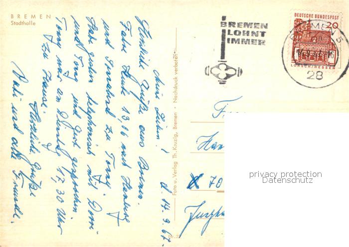 73174851 alte Postkarte BREMEN DE Stadthalle postalisch gelaufen Erhaltung siehe scans [NatalD47] KatCode: 11110004011000