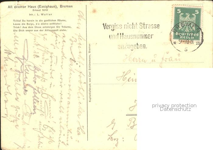 72283117 Bremen Essighaus postalisch nicht gelaufen Erhaltung siehe scans Alte Ansichtskarte Postkarte Matt Katcode 11110004011000
