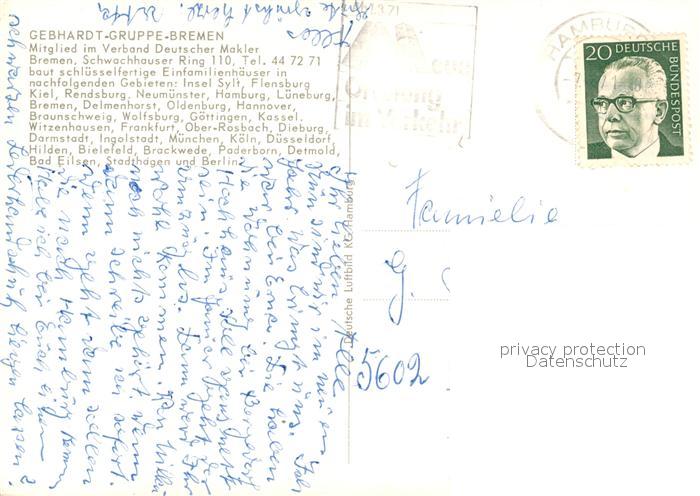 73338301 alte Postkarte Bremen Fliegeraufnahme Gebhardt Gruppe Wohnhaeuser postalisch gelaufen Erhaltung siehe scans [LiesaD40] KatCode: 11110004011000