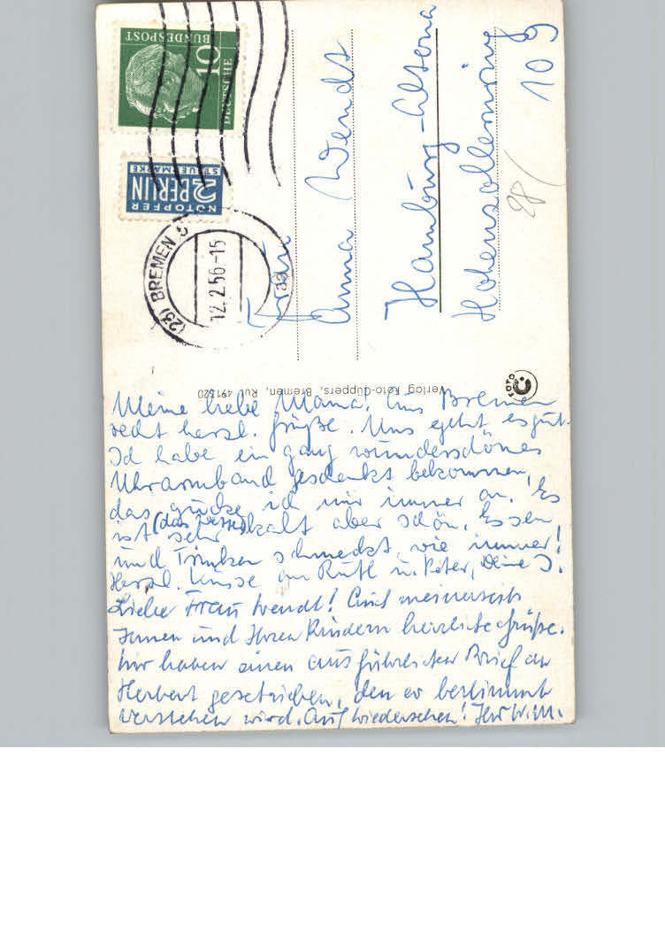 31122323 Bremen Hotel z. Post postalisch nicht gelaufen KatCode: 11110004011000