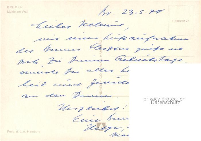 73541034 alte Postkarte Bremen Muehle am Wall Fliegeraufnahme postalisch gelaufen Erhaltung siehe scans [WerneD78] KatCode: 11110004011000