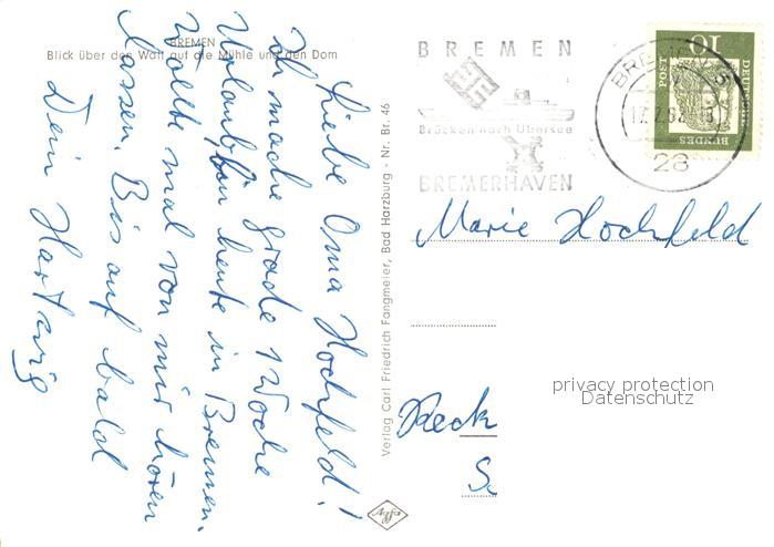 73295760 alte Postkarte Bremen Muehle Dom postalisch gelaufen Erhaltung siehe scans [PaolaD17] KatCode: 11110004011000