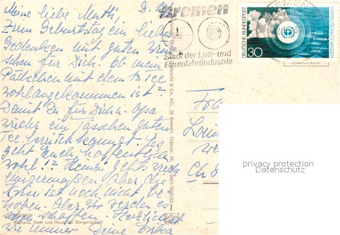 73296079 alte Postkarte Bremen Rathaus Dom Haus der Buergerschaft bei Nacht postalisch gelaufen Erhaltung siehe scans [LiesaD40] KatCode: 11110004011000