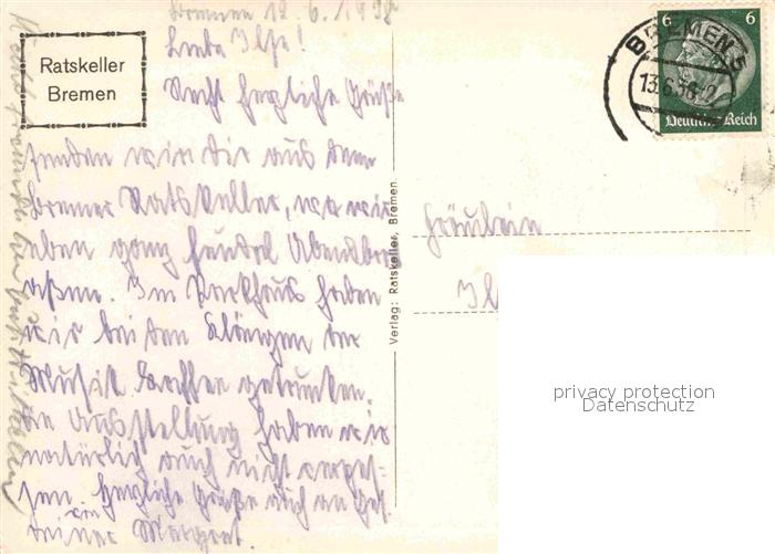 32719978 alte Postkarte Bremen Ratskeller Halle und Bacchusfass postalisch gelaufen Erhaltung siehe scans [NatalD47] KatCode: 11110004011000