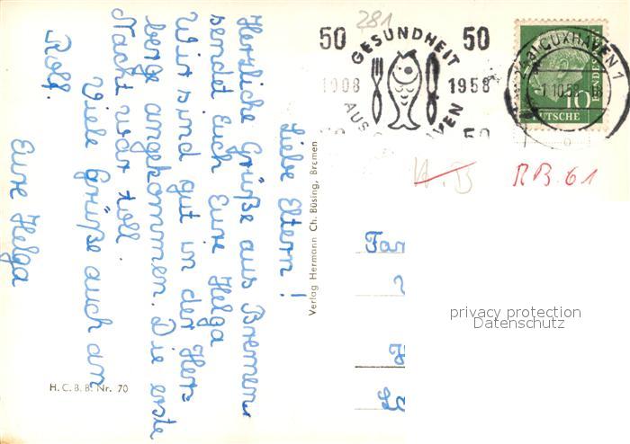 73335604 alte Postkarte Bremen Stadtpanorama Blick ueber die Weser postalisch gelaufen Erhaltung siehe scans [FriedD77] KatCode: 11110004011000