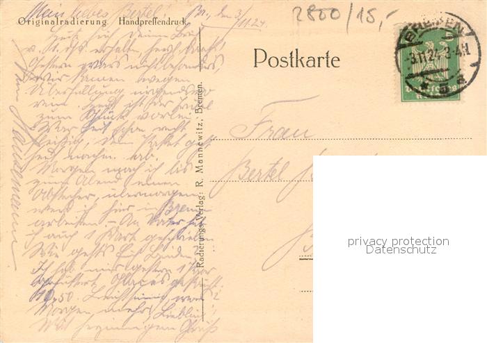 73564778 alte Postkarte Bremen Wage K?nstlerkarte postalisch gelaufen Erhaltung siehe scans [LiesaD40] KatCode: 11110004011000