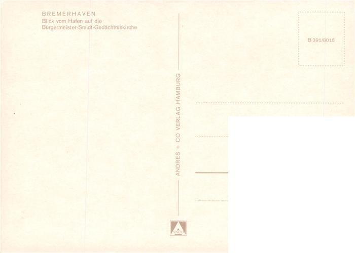 73948542 Bremerhaven Blick vom Hafen auf die Buergermeister-Smidt-Gedaechtniskirche Altes Segelschiff postalisch nicht gelaufen Erhaltung siehe scans [FriedD77] KatCode: 11110004012000