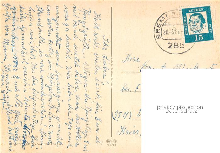 73731066 alte Postkarte Bremerhaven Buergermeister-Smidt-Strasse postalisch gelaufen Erhaltung siehe scans [LiesaD40] KatCode: 11110004012000