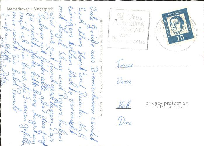 72201038 alte Postkarte Bremerhaven Buergerpark Kanal postalisch gelaufen Erhaltung siehe scans KatCode: 11110004012000