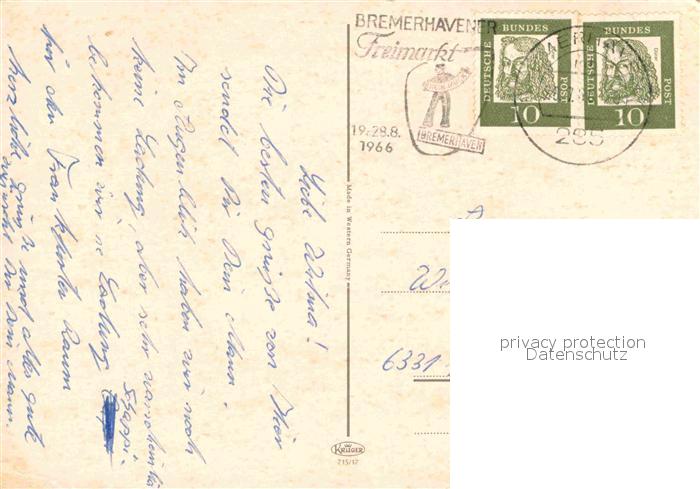 72849372 alte Postkarte Bremerhaven Columbuskai Buergerpark Hafen postalisch gelaufen Erhaltung siehe scans [KathaD81] KatCode: 11110004012000