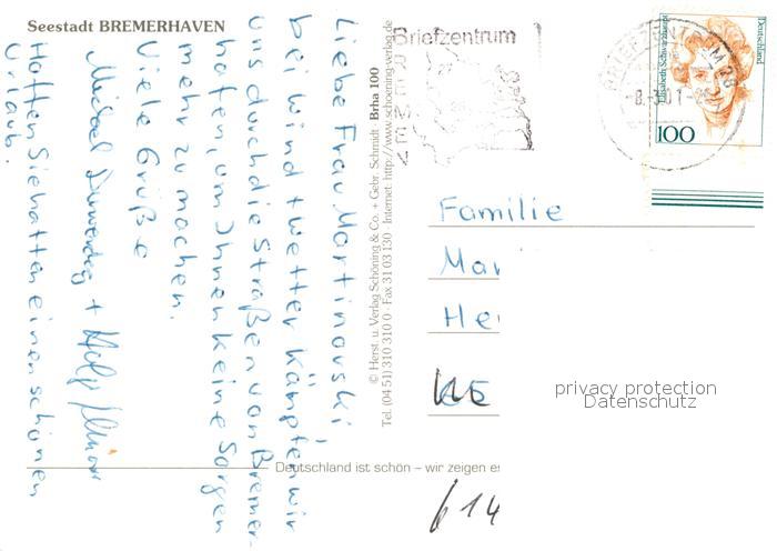 73070236 alte Postkarte Bremerhaven Denkmal Hafen postalisch gelaufen Erhaltung siehe scans [NatalD47] KatCode: 11110004012000