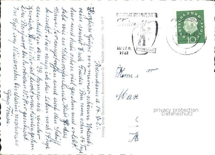 72404627 alte Postkarte Bremerhaven Fischereihafen Stadtpark Lehe Columbusbahnhof Fischdampfer Theaterplatz Tiergrotten und Strandhalle Fischauktion Geestebruecke Columbuskaje postalisch gelaufen Erhaltung siehe scans KatCode: 11110004012000