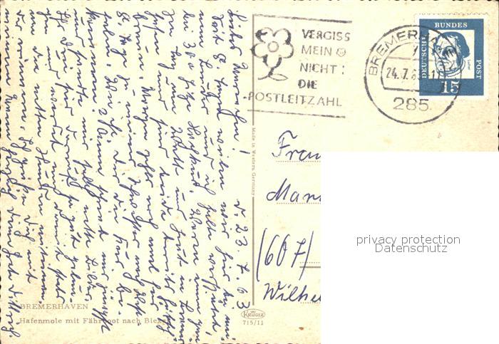 71924599 alte Postkarte Bremerhaven Hafenmole Faehboot Blexen postalisch gelaufen Erhaltung siehe scans KatCode: 11110004012000