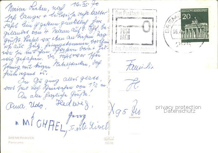 72535450 alte Postkarte Bremerhaven Panorama mit Hafen postalisch gelaufen Erhaltung siehe scans [AndreD76 kt121box] KatCode: 11110004012000