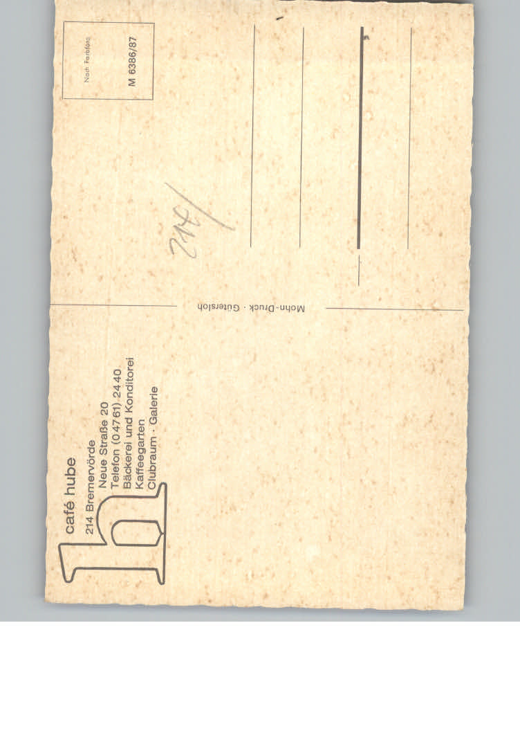 31117708 Bremervoerde Cafe Hube postalisch nicht gelaufen KatCode: 11110003357008