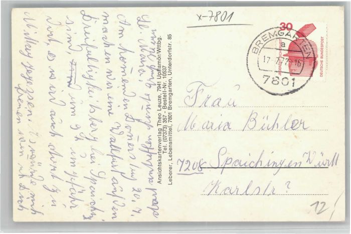 40728950 alte Postkarte Bremgarten postalisch gelaufen KatCode: