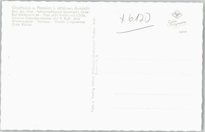 40254508 Bremhof Odenwald Gasthaus Pension zur schönen Aussicht KatCode 11110006437011