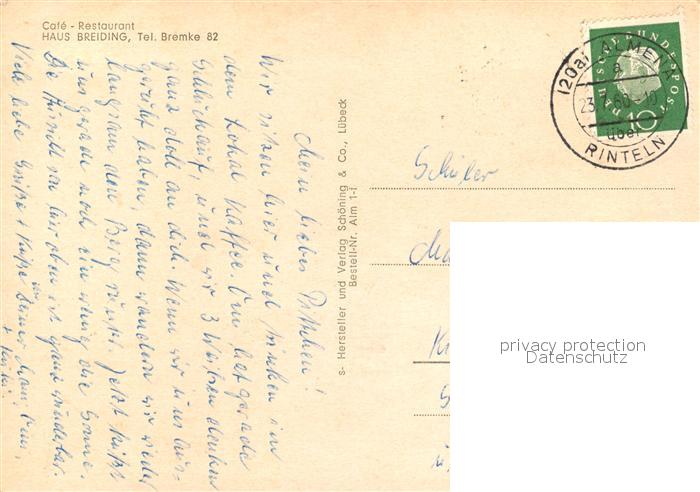 73086160 alte Postkarte Bremke Bodenwerder Restaurant Cafe Haus Breiding postalisch gelaufen Erhaltung siehe scans [KathaD81] KatCode: 11110003255016