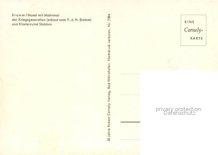 73673633 Bremm Mosel Fliegeraufnahme Mahnmal Klosterruine Stubben postalisch nicht gelaufen Erhaltung siehe scans [WerneD78] KatCode: 11110007135012