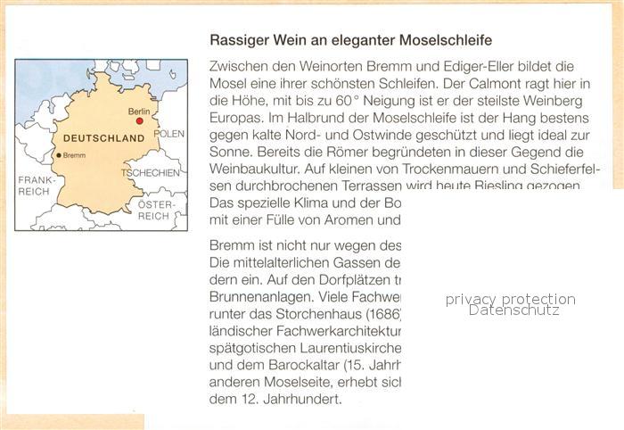73671858 Bremm Mosel Partie an der Mosel postalisch nicht gelaufen Werbekarte (keine Postkarte) Erhaltung siehe scans [WerneD78] KatCode: 11110007135012