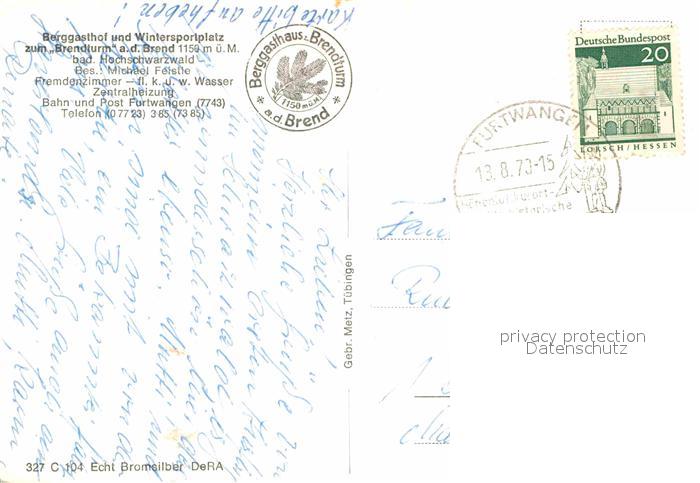 72796437 alte Postkarte Brend Schwarzwald Brendturm Berggasthof postalisch gelaufen Erhaltung siehe scans [LiesaD40] KatCode: 11110008326017