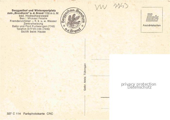 74104687 Brendturm Furtwangen Berggasthof zum Brendturm postalisch nicht gelaufen Erhaltung siehe scans [WerneD78] KatCode: 11110008326017