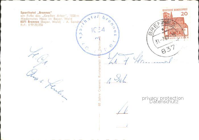 72310169 alte Postkarte Brennes Bayerisch Eisenstein Sporthotel Brennes postalisch gelaufen Erhaltung siehe scans KatCode: 11110009276115