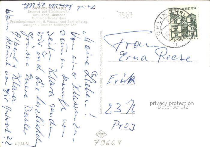 31714247 alte Postkarte Brennet Gasthaus zum Kreuz postalisch gelaufen Erhaltung siehe scans KatCode: 11110008337116