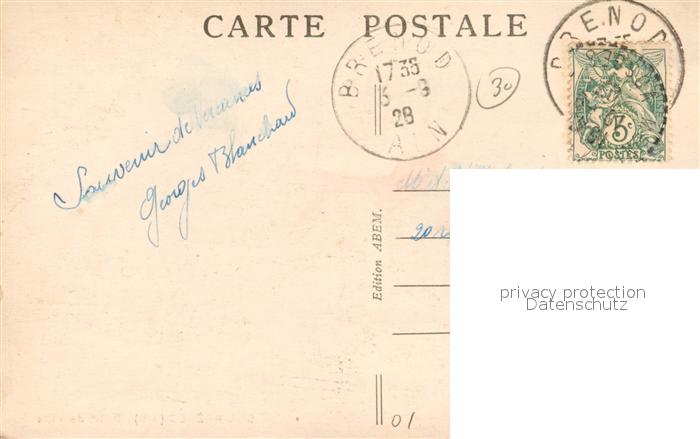 13491074 carte postale Brenod Hotel de Ville postalisch gelaufen Erhaltung siehe scans [FriedD77] KatCode: 11170001401060