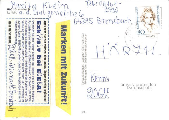72024001 alte Postkarte Brensbach Fliegeraufnahme postalisch gelaufen Erhaltung siehe scans KatCode: 11110006437003