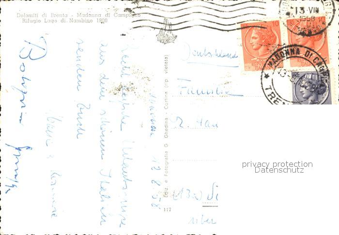 old postcard Brenta Dolomiten Madonna Campiglio Lago Nambino postalisch gelaufen Erhaltung siehe scans