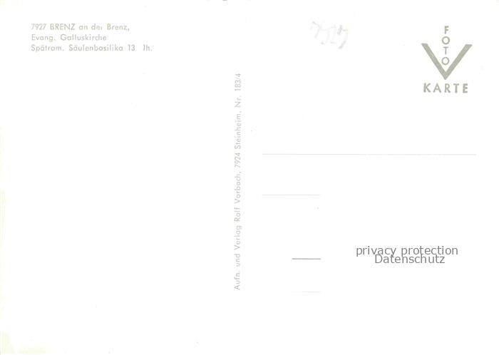 74041087 Brenz Sontheim Heidenheim Evangelische Galluskirche postalisch nicht gelaufen Erhaltung siehe scans [FriedD77] KatCode: 11110008135031