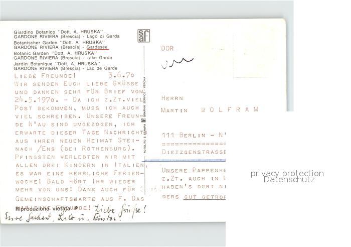 old postcard Brescia Botanischer Garten postalisch gelaufen Erhaltung siehe scans