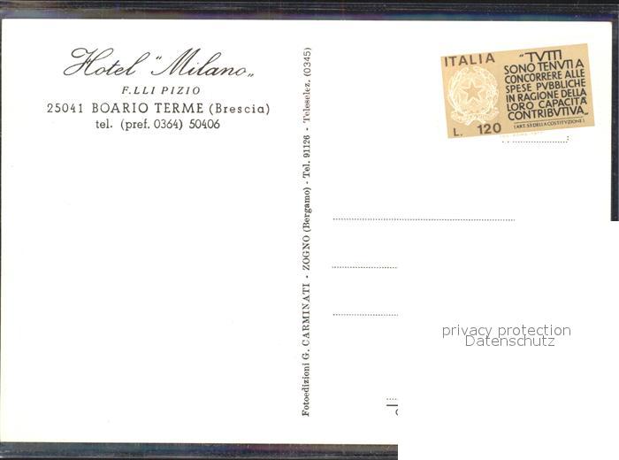 Brescia Hotel Milano Boario Terme postalisch nicht gelaufen Erhaltung siehe scans