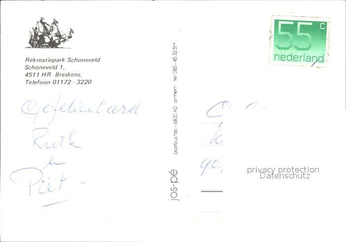 old postcard Breskens Sluis Recreatiepark Schoneveld Hallenbad Tennisplatz postalisch gelaufen Erhaltung siehe scans