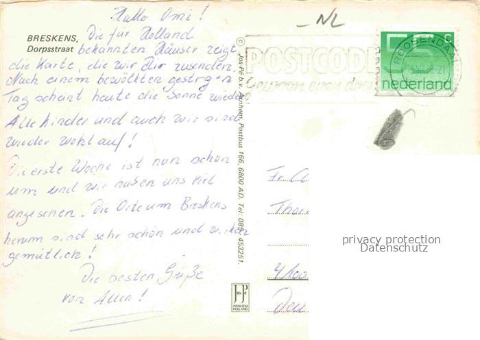 74099795 old postcard Breskens Zeeland NL Dorpstraat postalisch gelaufen Erhaltung siehe scans [WerneD78] KatCode: 11371400