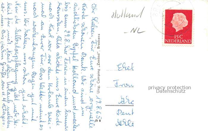 74100395 old postcard Breskens Zeeland NL Int Winkel Zomerwoningen Paviljoen Camping Zeebad Int Restaurant postalisch gelaufen Erhaltung siehe scans [WerneD78] KatCode: 11371400