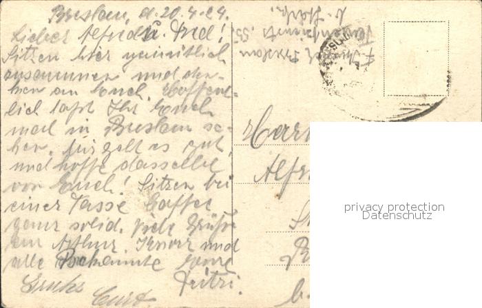 31738595 old postcard Breslau Niederschlesien Bahnpost Kaffe Schuster postalisch gelaufen Erhaltung siehe scans KatCode: 11410