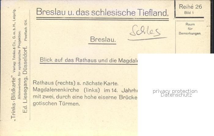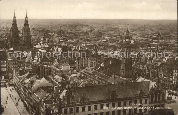 old postcard Breslau Niederschlesien Blick auf Rathaus und Magdalenenkirche postalisch gelaufen Werbekarte (keine Postkarte) Erhaltung siehe scans