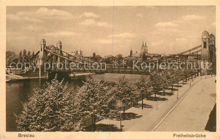 old postcard Breslau Niederschlesien Freiheitsbruecke postalisch gelaufen Erhaltung siehe scans [FriedD77]
