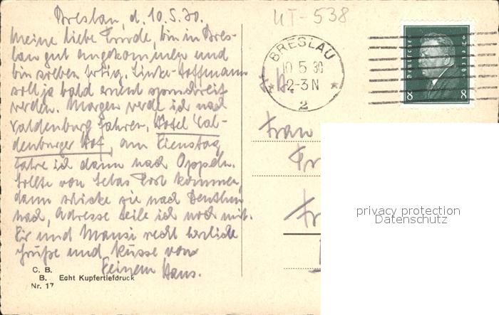 old postcard Breslau Niederschlesien Liebichshoehe postalisch gelaufen Erhaltung siehe scans