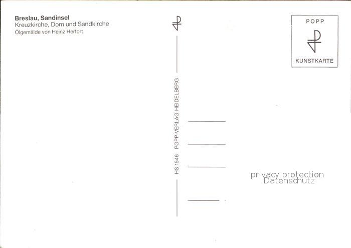 Breslau Niederschlesien Sandinsel Kreuzkirche Dom Sandkirche Kuenstlerkarte postalisch nicht gelaufen Erhaltung siehe scans
