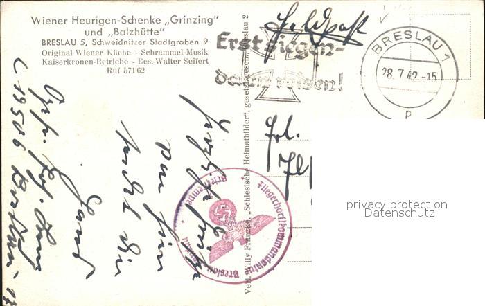 31738505 old postcard Breslau Niederschlesien Wiener Heurigen-Schenke Grinzing postalisch gelaufen Feldpost Erhaltung siehe scans KatCode: 11410