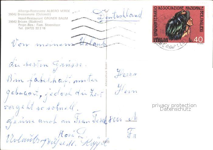 old postcard Bressanone Albero Verde Gruener Baum postalisch gelaufen Erhaltung siehe scans
