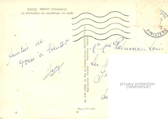 13582013 Brest 29 Bateau Richelieu au mouillage en rade postalisch gelaufen Erhaltung siehe scans [FriedD77] carte postale Frie Katcode 11170029129019