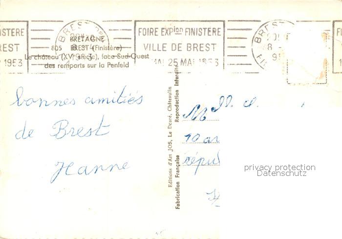 13581969 Brest 29 Chateau XVe siècle Remparts sur la Penfeld postalisch gelaufen Erhaltung siehe scans [FriedD77] carte postale Frie Katcode 11170029129019