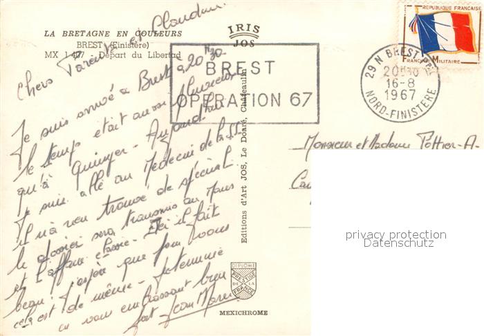 13663452 Brest 29 Depart du Libertad postalisch gelaufen Erhaltung siehe scans [WerneD78] carte postale Wern Katcode 11170029129019