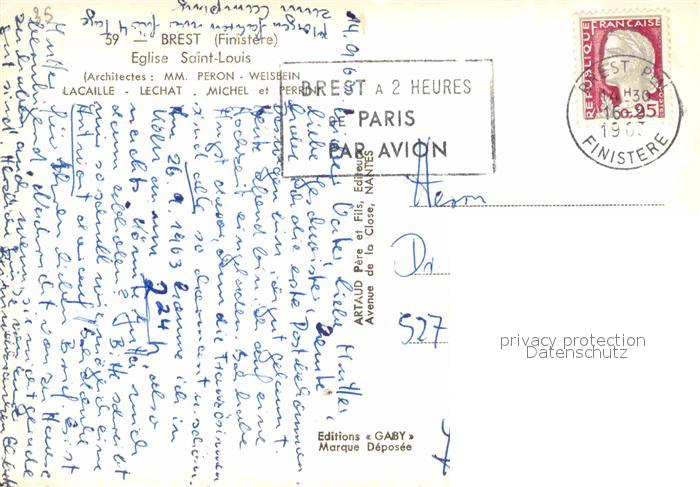 12697385 carte postale Brest 29 Eglise Saint Louis postalisch gelaufen Erhaltung siehe scans [WerneD78] KatCode: 11170029129019